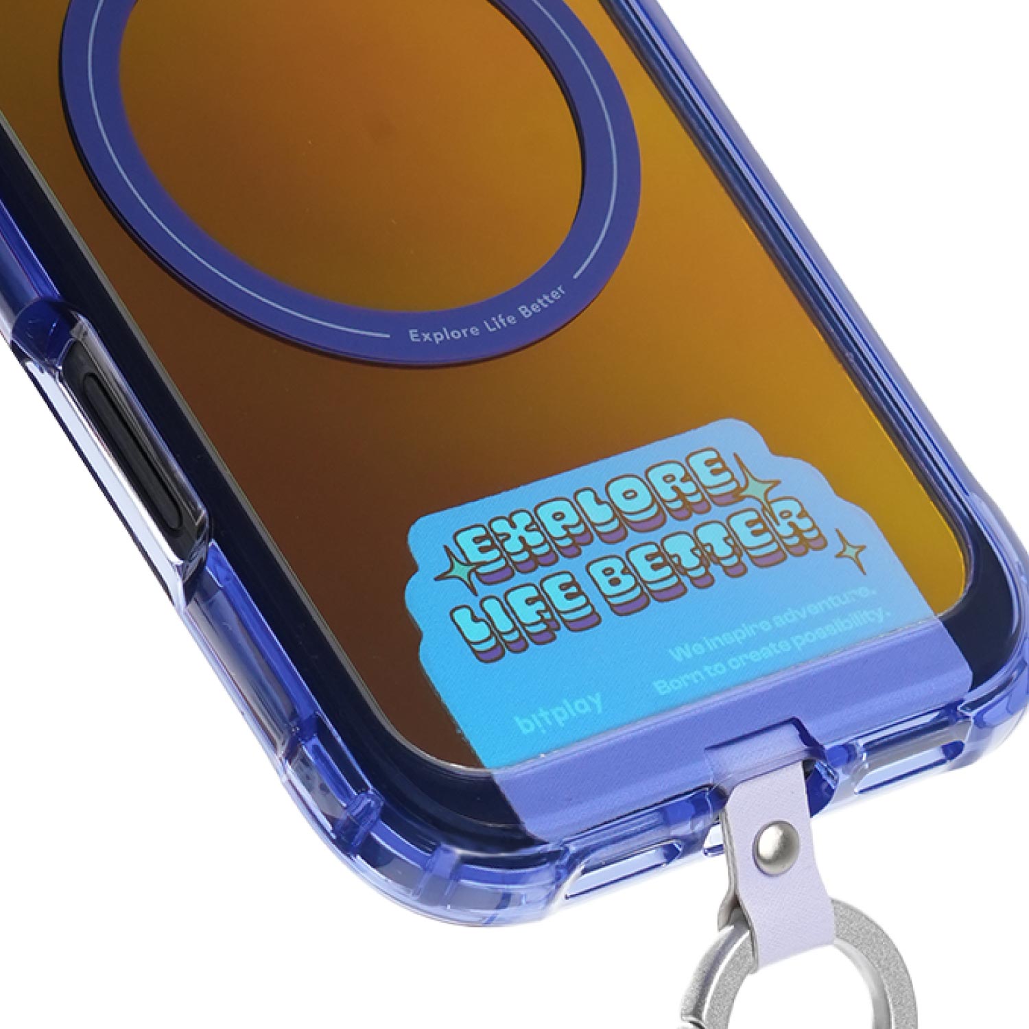 掛繩通用墊片置入於手機殼內,連接手機本身與掛取配件 。