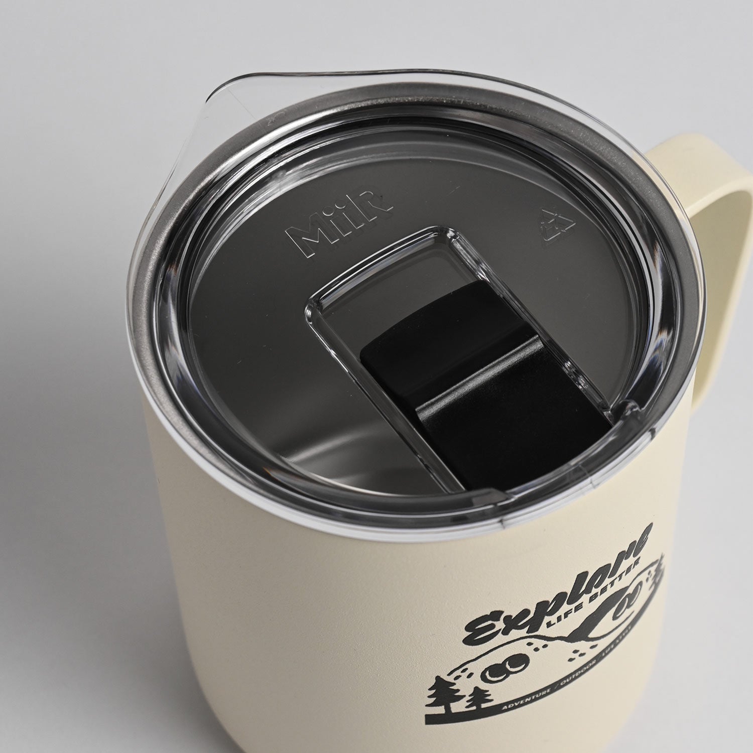 bitplay這次依據品牌風格,推出兩款與MiiR聯名的保溫馬克杯:軍綠色標語款,較有帥氣的戶外軍用 氛圍 ; 岩灰色為特製插畫款,將山丘擬人化,增添可愛幽默的氣息。